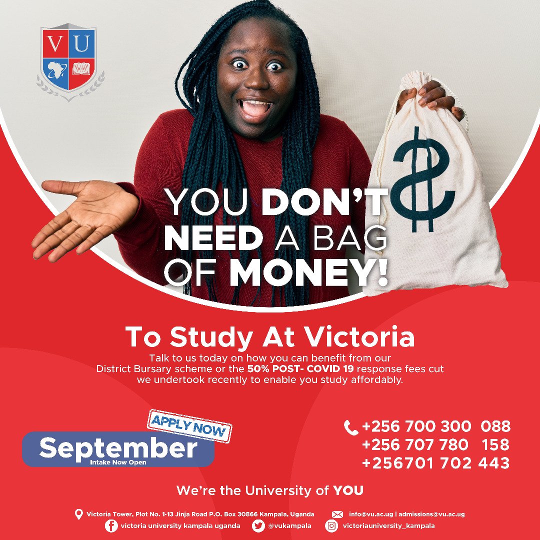 “Admission into Victoria University for the September 2022 intake, will close in a few weeks from now. Don’t be left out. Apply Now. http://vu.ac.ug [email protected] [email protected] 0782397699,” the University said.