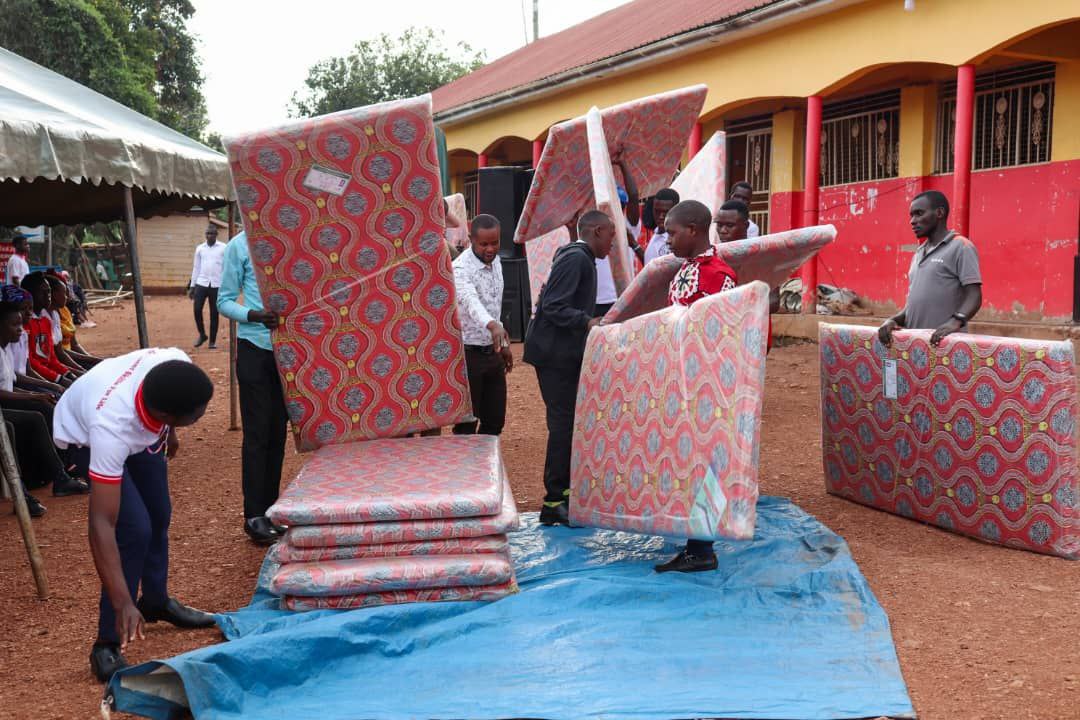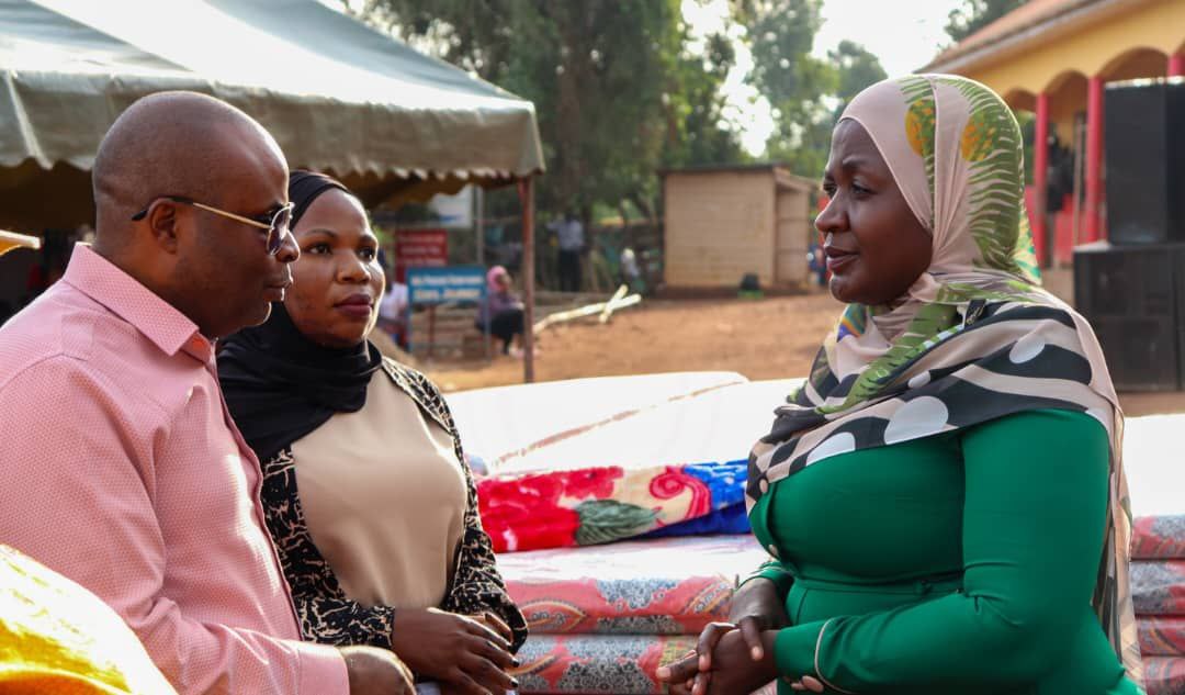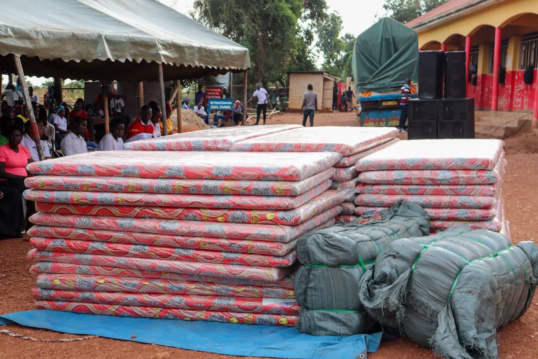LUWERO, (UG): Hajjat Hadijah Namyalo Uzeiye, the Head of ONC (Office of the National Chairman – NRM) yesterday donated over 100 blankets, 50 mattresses and 30 bags of cement to Excel Vocational Training Centre after a recent fire tragedy that befell the school.