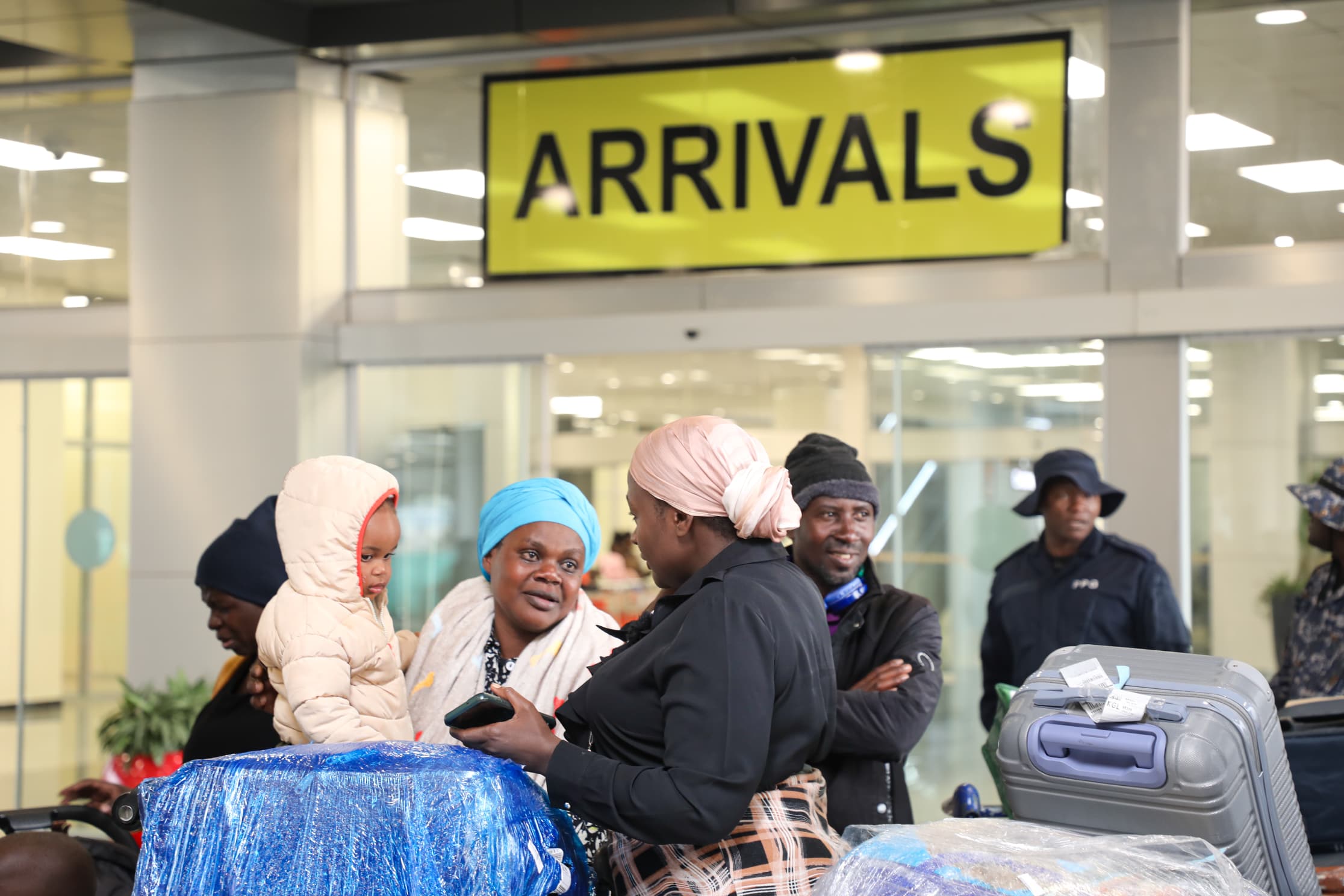This first batch of returnees, accompanied by Moses Badru Kibombo Ssentongo, Chairperson of the Confederation of Ugandans living in Southern Africa (COUSA), arrived at the airport at around 10 am aboard RwandaAir, and were welcomed by their families at the waiting lobby.