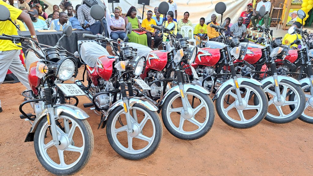 Luweero, Uganda: The NRM Vice Chairperson for Central Region and Minister of State for Microfinance, Hon. Kyeyune Haruna Kasolo, Monday handed over six brand new motorcycles to Greater Luweero youth leaders, fulfilling a pledge he made last week on September 26 during a stakeholder meeting at Luweero Community Centre.