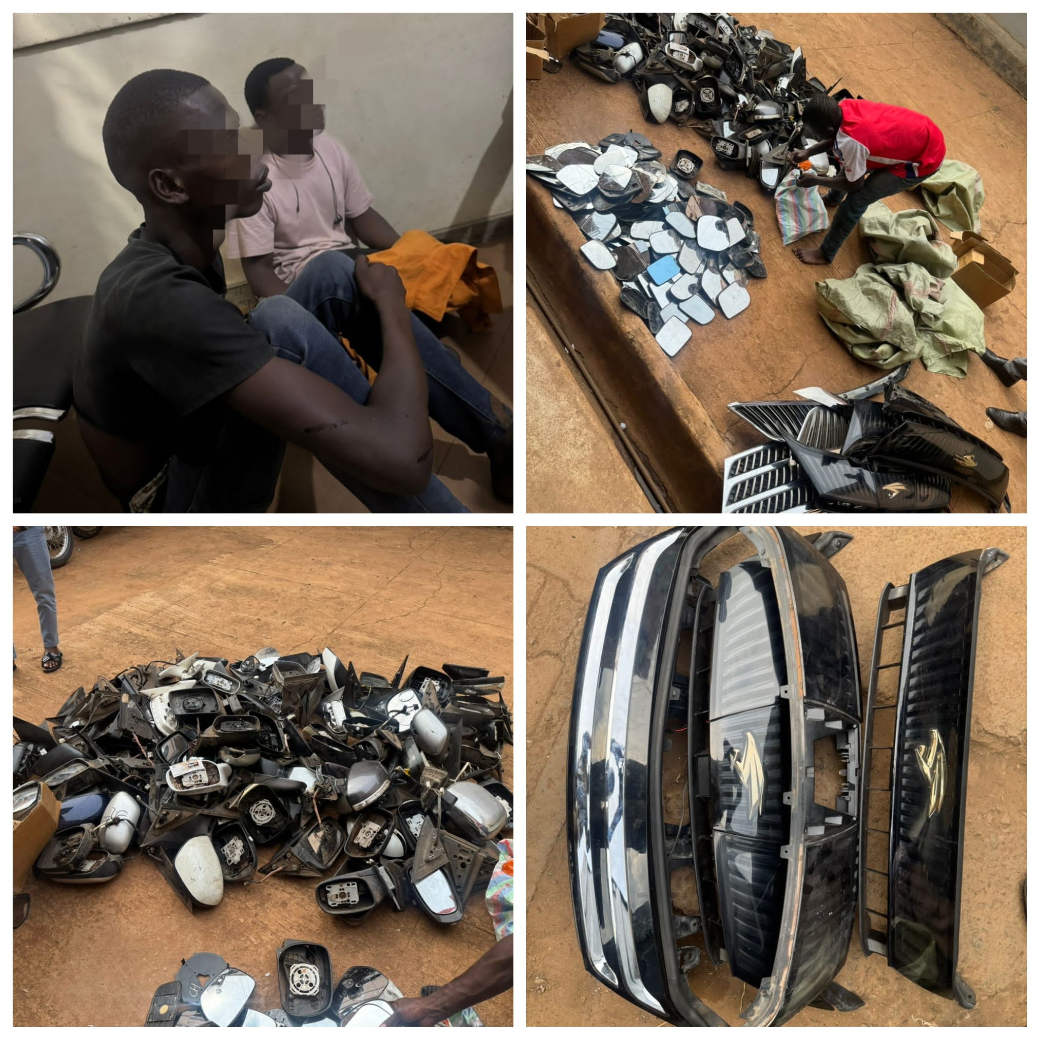 During the operation, police recovered several stolen motor vehicle parts, including baby mirrors, side mirrors, grills for Toyota Harriers, headlamps, and other accessories. The recoveries were made around Kiseka area, which authorities have long linked to the illegal motor vehicle parts trade.