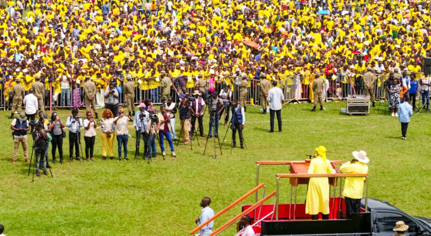 “I am requesting for 70 percent of the vote,” she told supporters. “Remember that the numbers that have come here for the rally should be the same numbers that go to vote when the time comes. If you vote for NRM, you are voting for unity, peace and stability. When you vote for the opposition, you vote for disunity and conflict.”