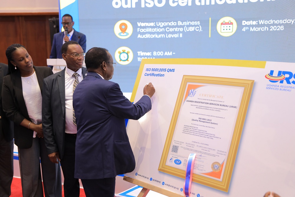 URSB’s certification reflects its strategic focus on strengthening governance, enhancing operational efficiency and improving client experience in business registration and intellectual property services.